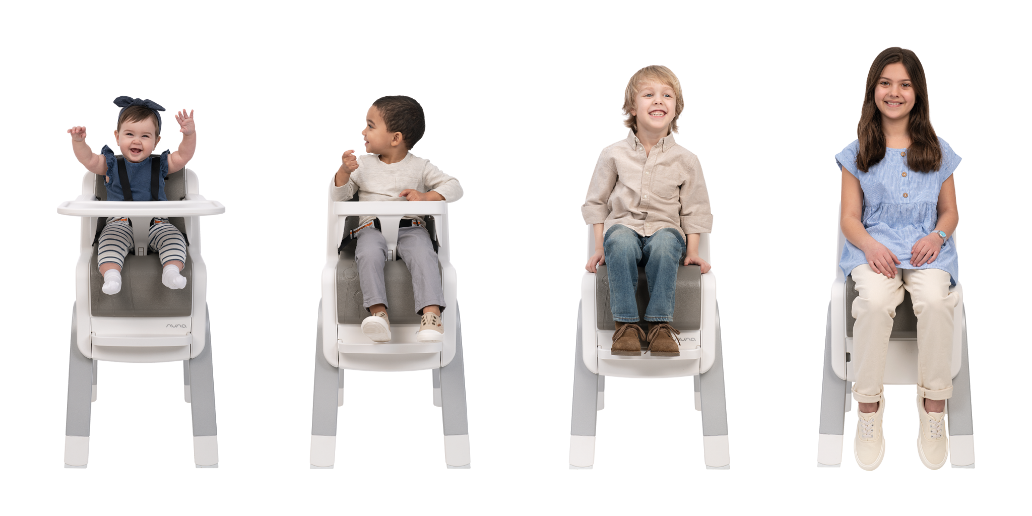 Evolves from high chair for baby to big-kid chair
