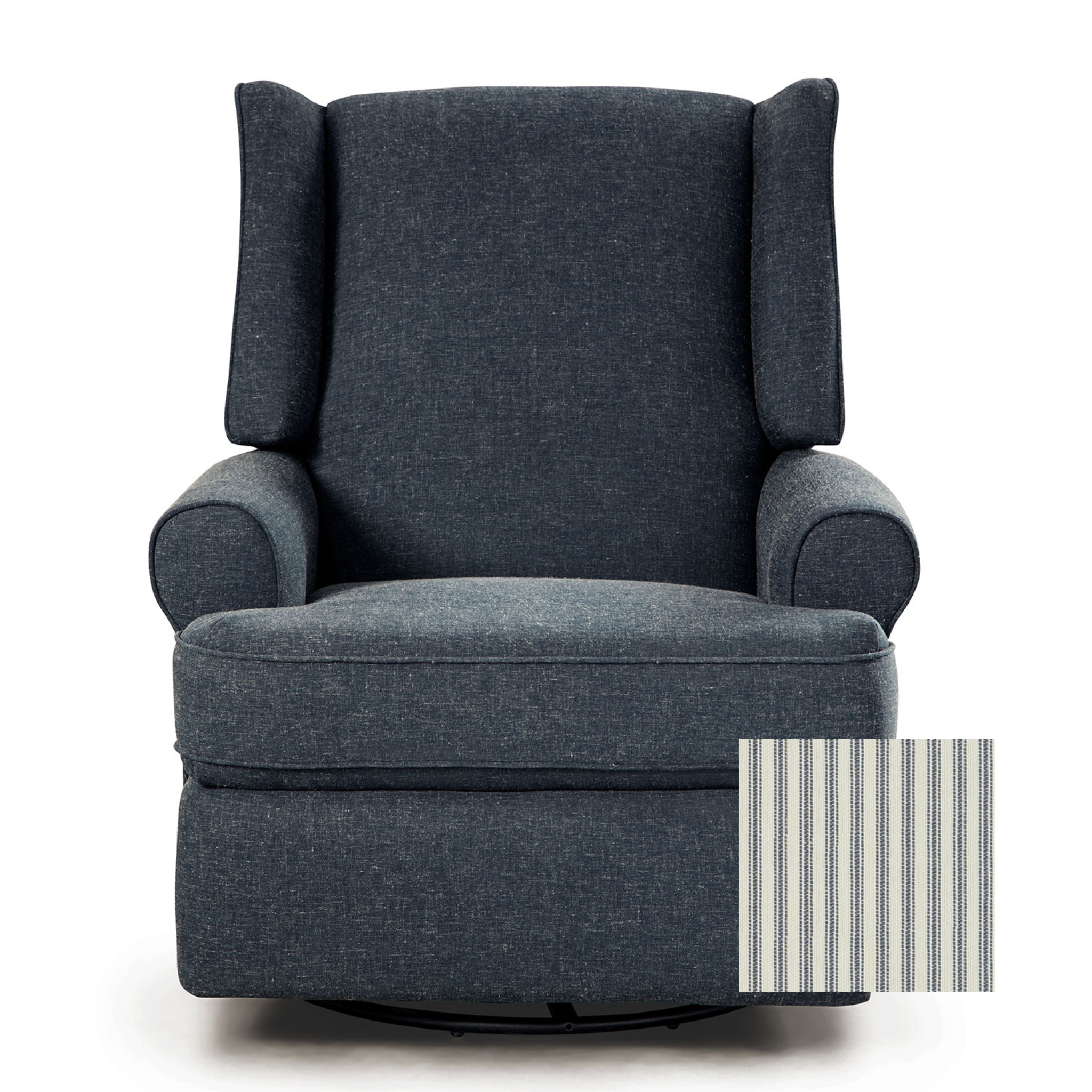 TheLogan Swivel Glider Reclineris the perfect blend of style and comfort. This recliner features fine, made-in-the-USA tailoring with a tufted back, clean lines, and an updated wingback design. Ideal for nurseries, living rooms, or bedrooms, theLogan Swivel Glider Reclineroffers smooth 360-degree swivel motion and easy gliding for ultimate relaxation. Recline effortlessly with the hidden inside handle or upgrade to the power option, which includes a USB charging port. Customize yourLogan Swivel Glider Reclinerwith 47 fabric options, including easy-to-clean, stain-resistant materials. Built with kiln-dried hardwood and expert craftsmanship, this recliner is designed to provide years of comfort and support.